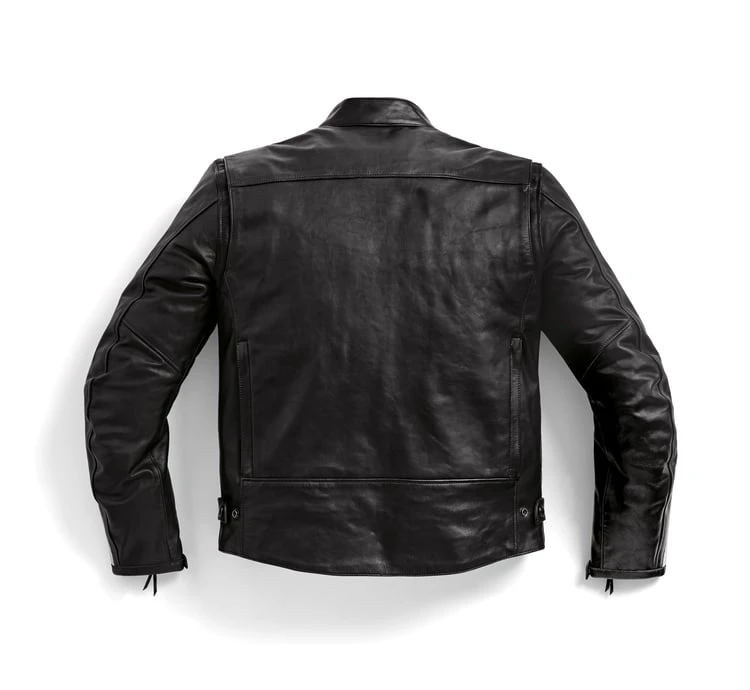 - Classic, sporty leather motorcycling jacket made of cowhide leather