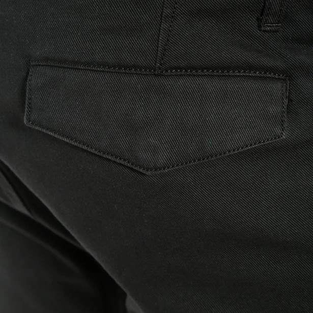 The Superior Protection Pants – Chino Tex are a technical motorcycle garment that combines Dainese safety with the comfort and convenience of casual pants. They are made with innovative Armalith® fabric, a soft but extremely abrasion- and tear-resistant composition of cotton, Lycra® and UHMWPE (Ultra High Molecular Weight Polyethylene) fiber. This very lightweight material, used in the field of industrial safety, is more resistant to abrasion than cordura or aramid fiber and offers greater mechanical strength than steel. Heightened protection in a single-layer yarn with no additional layers, which has the same consistency and fit as normal cotton pants.