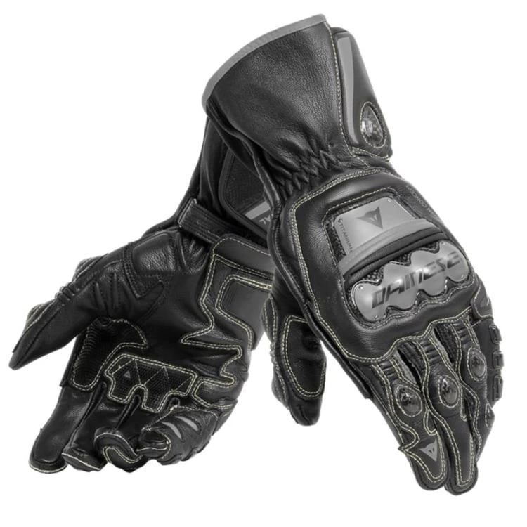 The motorbike gloves with superlight strength and protectors in carbon fibre, titanium and aramid fibre.