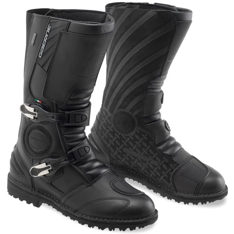 New boot for tourism and off-road, the ideal choice for seasoned travellers. Full grain waterproof leather upper with a layer of suede on the inside to protect the leg from heat. The closure system uses two aluminium adjustable and interchangeable buckles, and a strip of velcro at the top allows to adjust the closing perfectly, adapting the boot to the shape of the calf. The lining inside is gore-tex, in addition to being waterproof, it also offers excellent breathability. Anti-slip rubber grip sole and removable insole.
