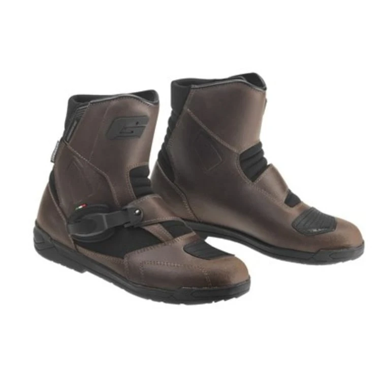A sports touring short boot, upper made of leather, it incorporates a Drytech waterproof membrane and lightweight microfiber on front and rear for more flexibility and comfort. Featuring a new lateral closure with one buckle and Velcro strap for easy and precise closure.Â