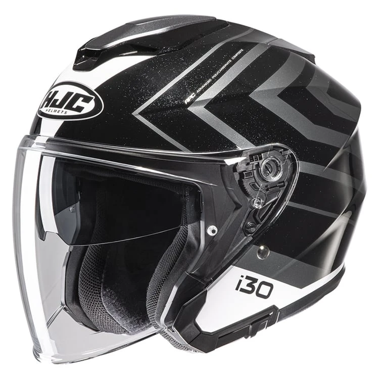The i30 was created from years of design and research, bringing the best open-face helmet to the market. It starts with the next generation face shield. This new Pinlock-ready shield offers a wide distortion-free view and now has a reinforced frame around the lower edges to reduce wind turbulence. The shield also uses the toolless, quick-release base plate system for easy-to-use installation/removal. We also updated the internal sun shield with an increased coverage area than our previous model. The 3 top vent intake system provides maximum airflow into the helmet, while the rear exhaust spoiler creates a vacuum effect flushing out the heat. The Multi-Cool top liner and cheek pad interior give additional cooling features with its moisture-wicking anti-bacterial fabric. The 2 Shell/3 EPS breakdown reduces the weight of the helmet and offers better sizing. The i30 is also Smart HJC ready to accept the 10B or 20B Bluetooth systems (*sold separately). Overall, this new Open Face helmet will be the choice of riders for years to come.