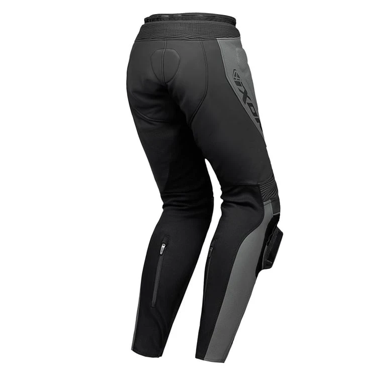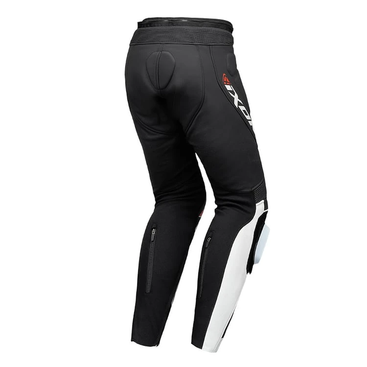- Outer material: leather and 4-way nylon stretch inserts in the crotch, legs, and ankles