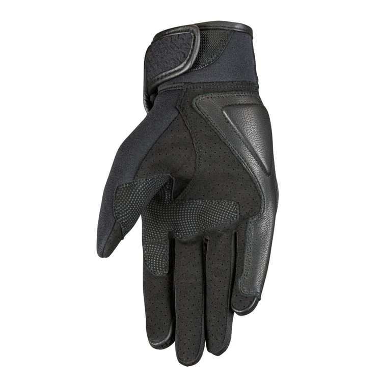 Glove with mesh vented parts; a leather insert on the index will prevent hook and loop possible abrasion. Neoprene cuff for lightness and an optimized fit.
