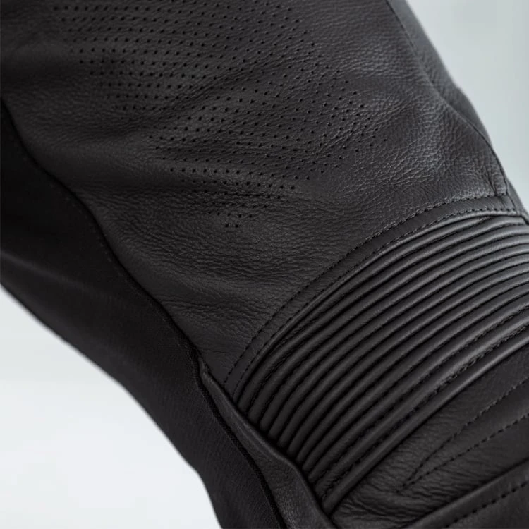 Made from a soft touch, matte finish premium cowhide leather, the Sabre jean is supported by a 4 way woven stretch with motion panels throughout for maximum comfort and movement when worn. Added to this are the fixed Quick-Dry mesh lining and the panel in panel perforation to keep you fresh. It also features a waist adjuster which offers a contoured fit. This jean exceeds its AAA CE rating. And to top this off, the suite of CE Level 1 armour, tone on tone TPU knee cups, and reflective logo and style panels offer added visibility and superior levels of protection.