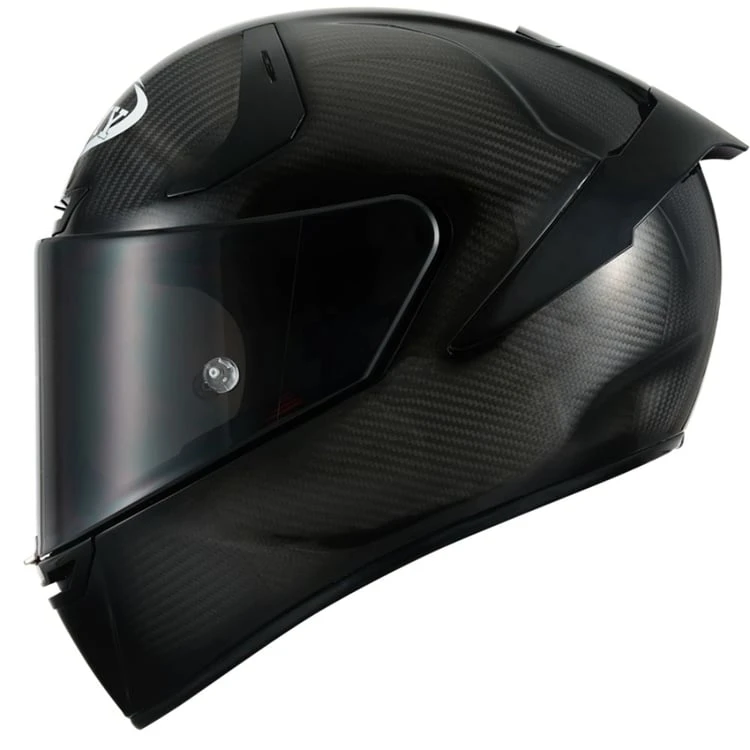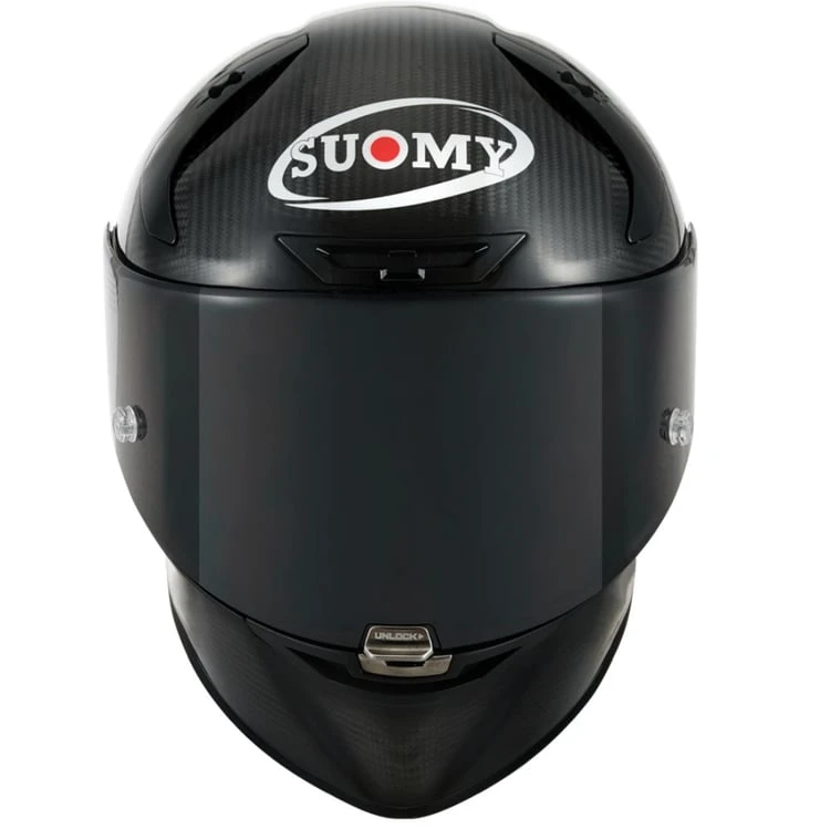 The Suomy SR-GP Carbon racing helmet is a masterpiece of innovation and technology. Its carbon fiber shell weighs only 1,250 grams. The FIR breathable liner and cheek pads provide exceptional cooling and comfort. The dual-density liner absorbs impact to protect the rider. The helmet’s Pinlock visor has an anti-fog system and a super wide 92-degree and 210-degree field of view. The aerodynamics of the helmet draw out hot air, keeping the rider cool. The SR-GP raises the bar of performance and takes standards to a new level.