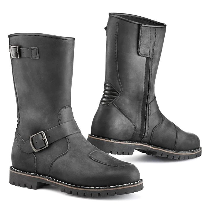 - CLOSURE: Lateral zip + Velcro band, adjustable steel buckles